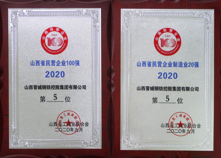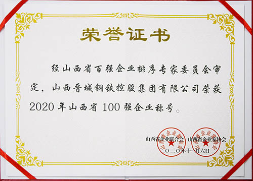 2020山西企業(yè)100強(qiáng)第17名、2020山西制造業(yè)企業(yè)100強(qiáng)第6名