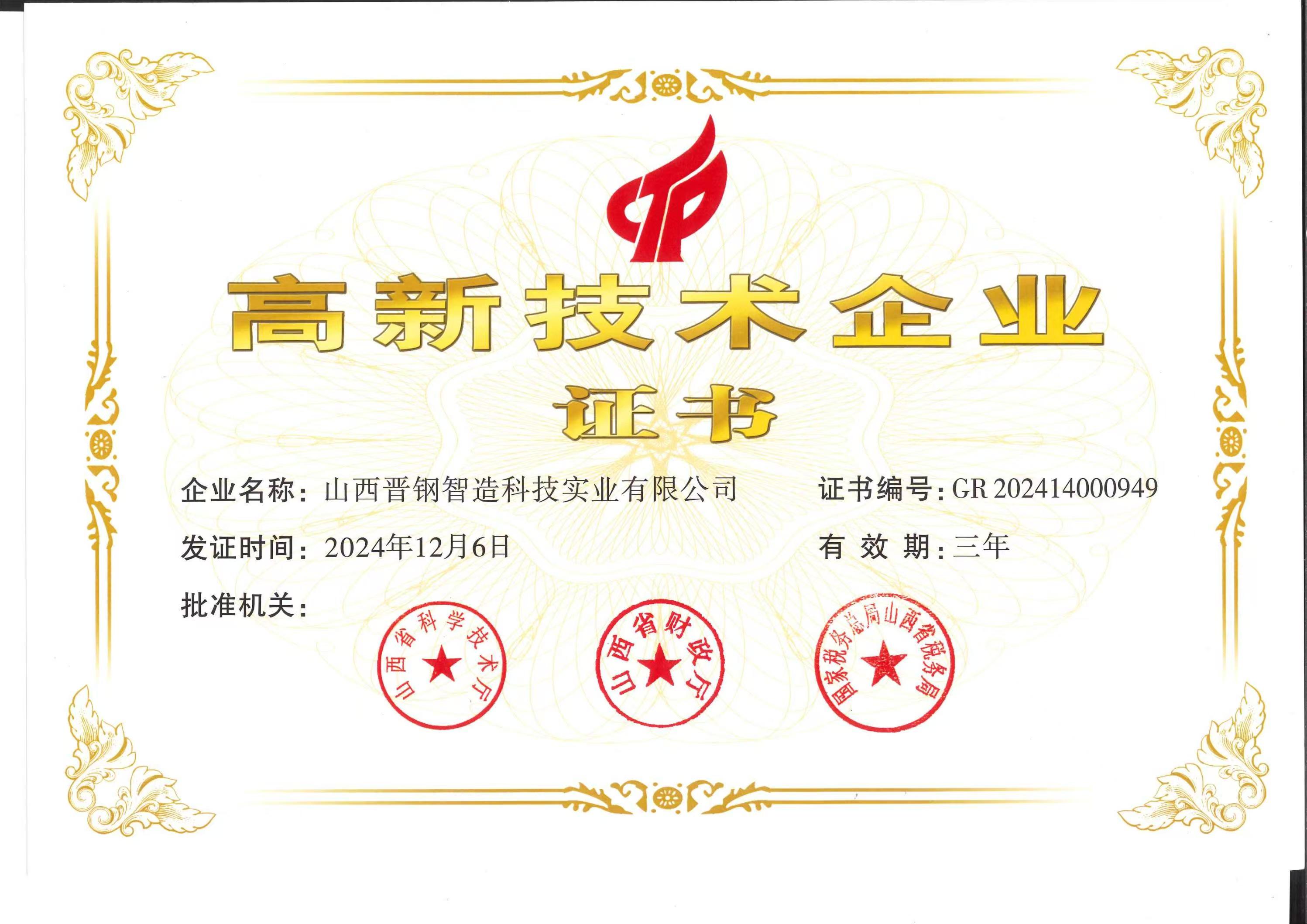 高新技術(shù)企業(yè)證書(山西晉鋼智造科技實(shí)業(yè)有限公司)