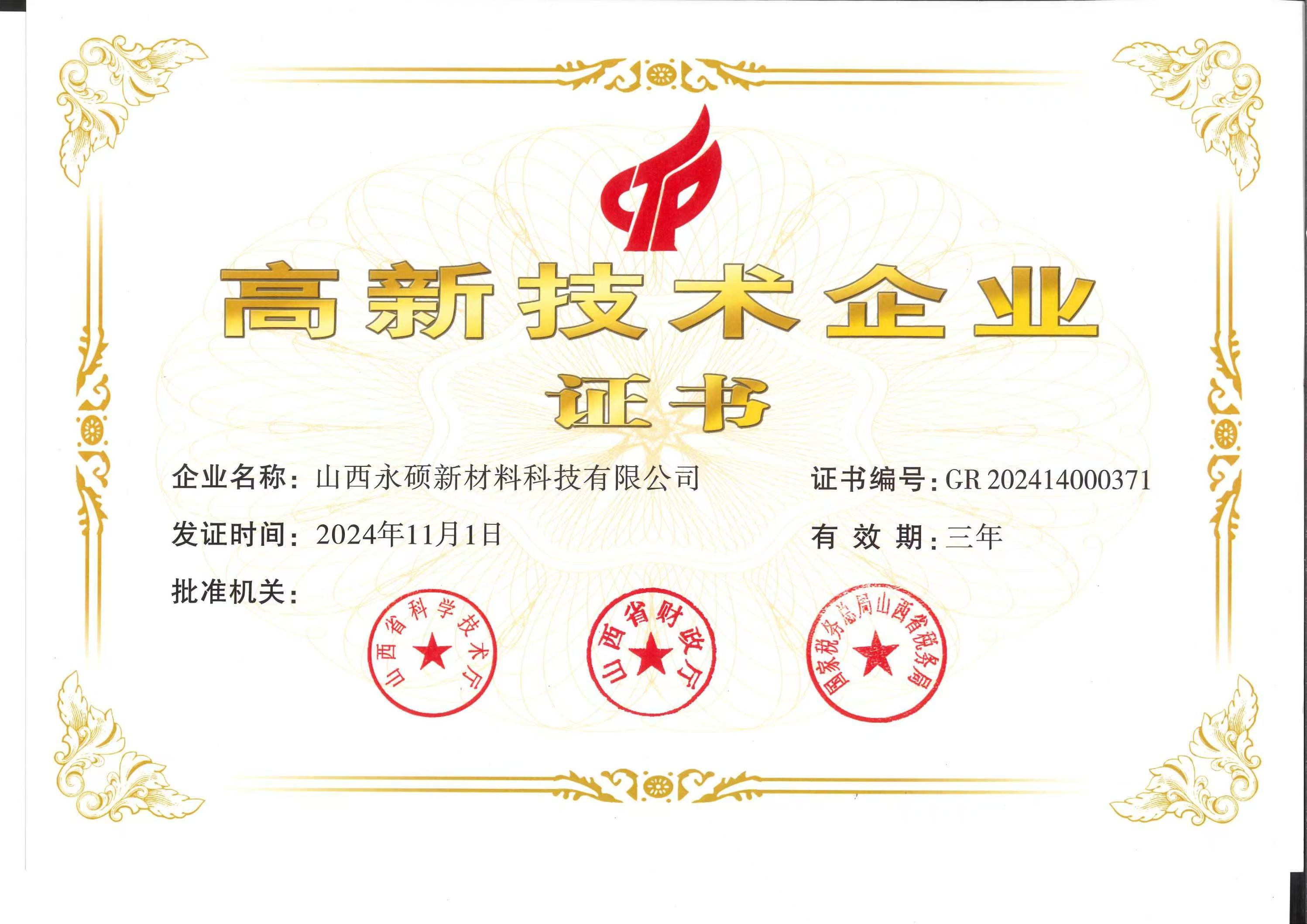 高新技術(shù)企業(yè)證書(山西永碩新材料科技有限公司)
