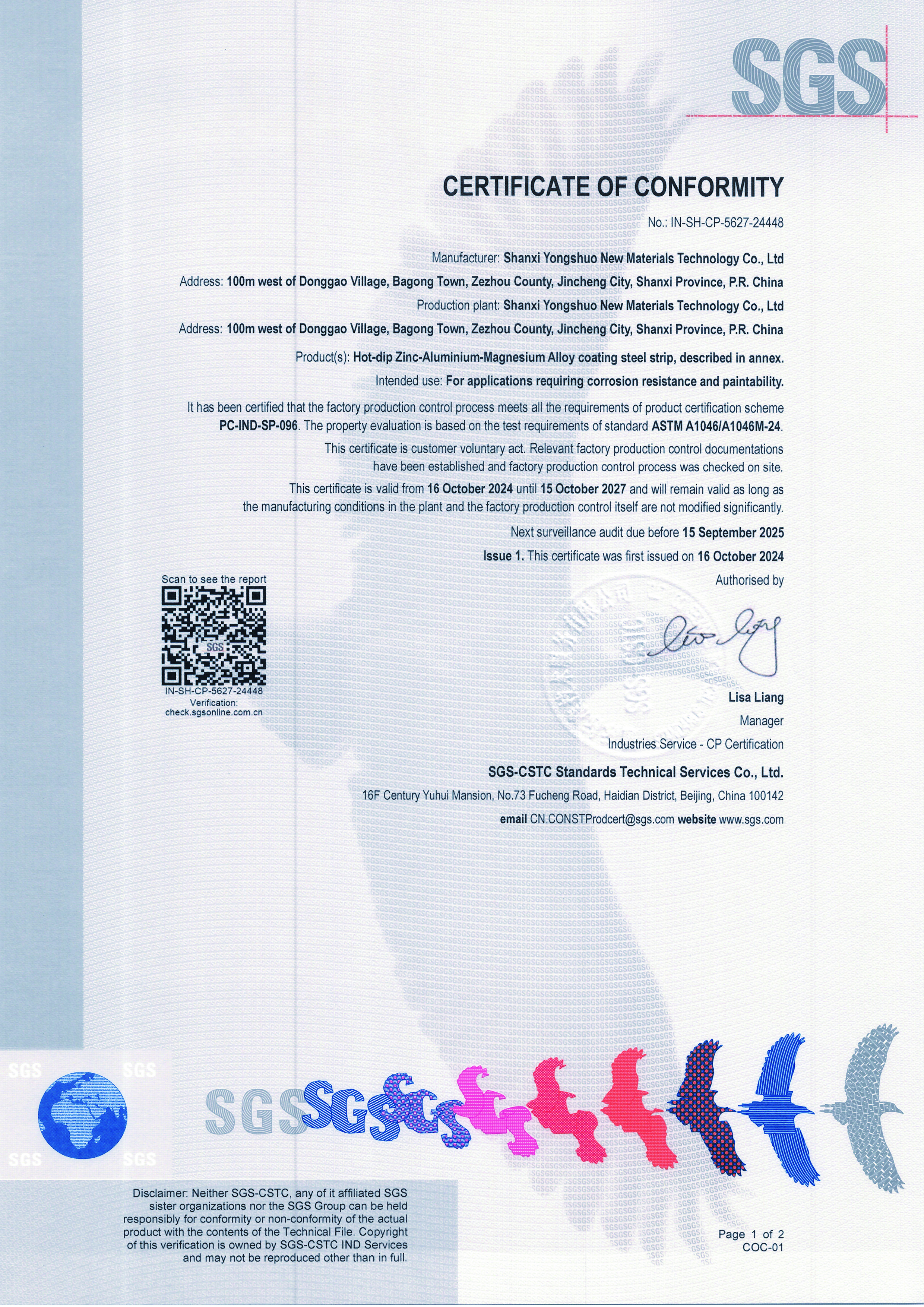 永碩ASTM 1046美標(biāo)熱鍍標(biāo)準(zhǔn)SGS認(rèn)證(第一頁(yè))