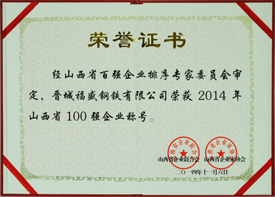 2015年山西省制造業(yè)100強(qiáng)第10名