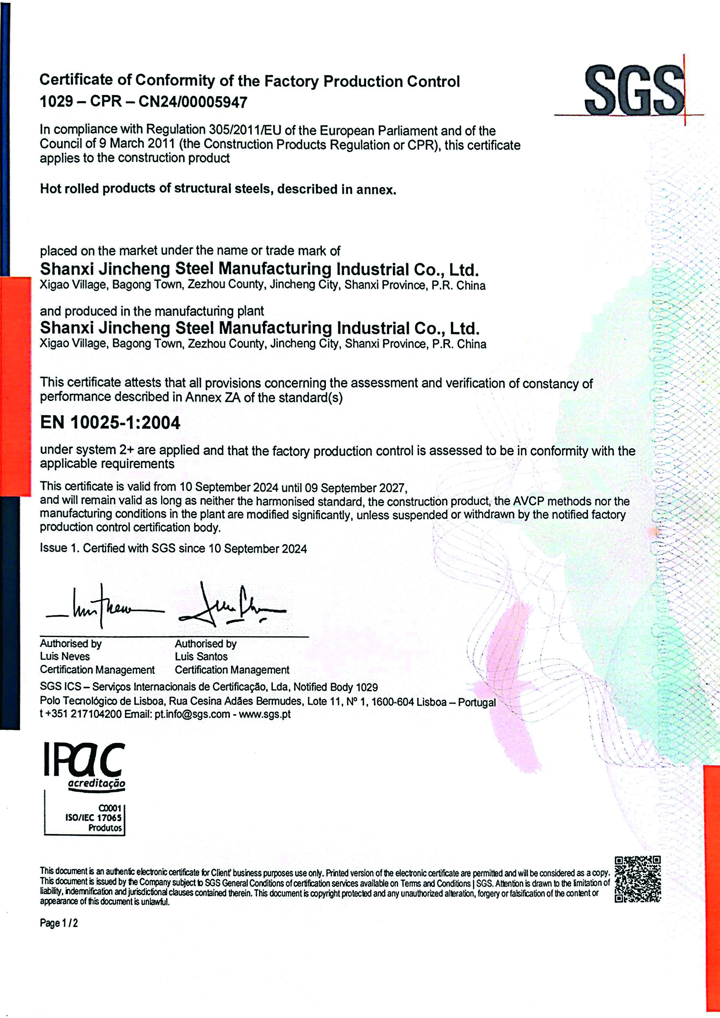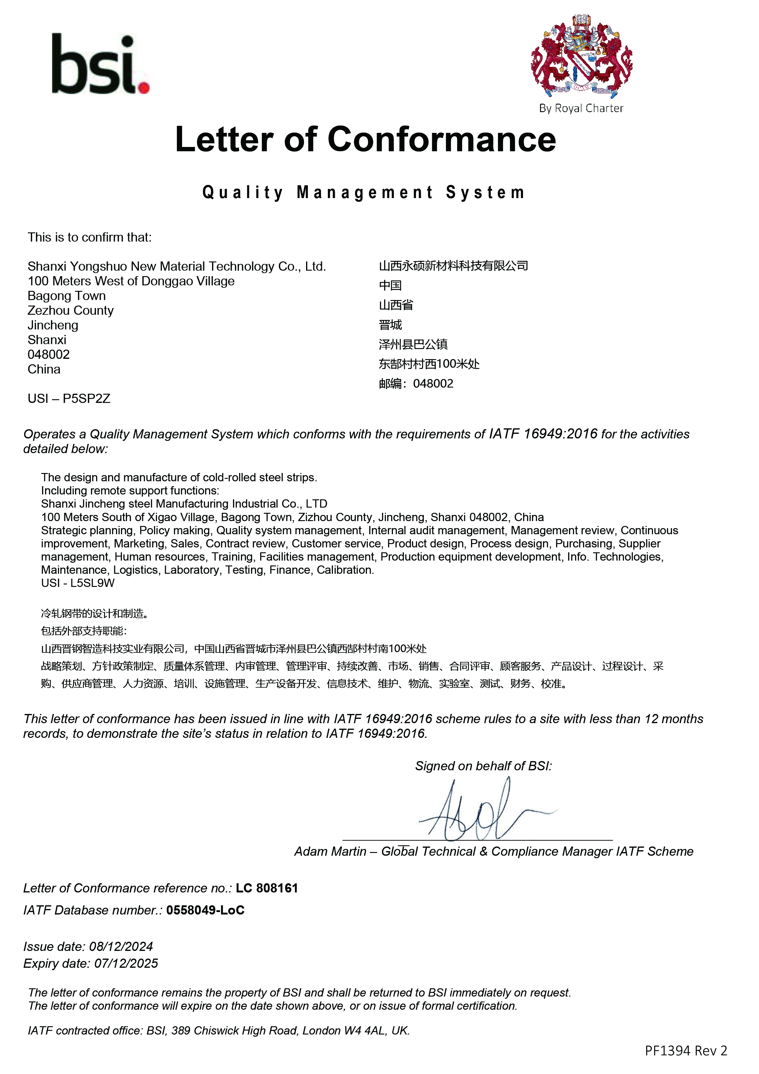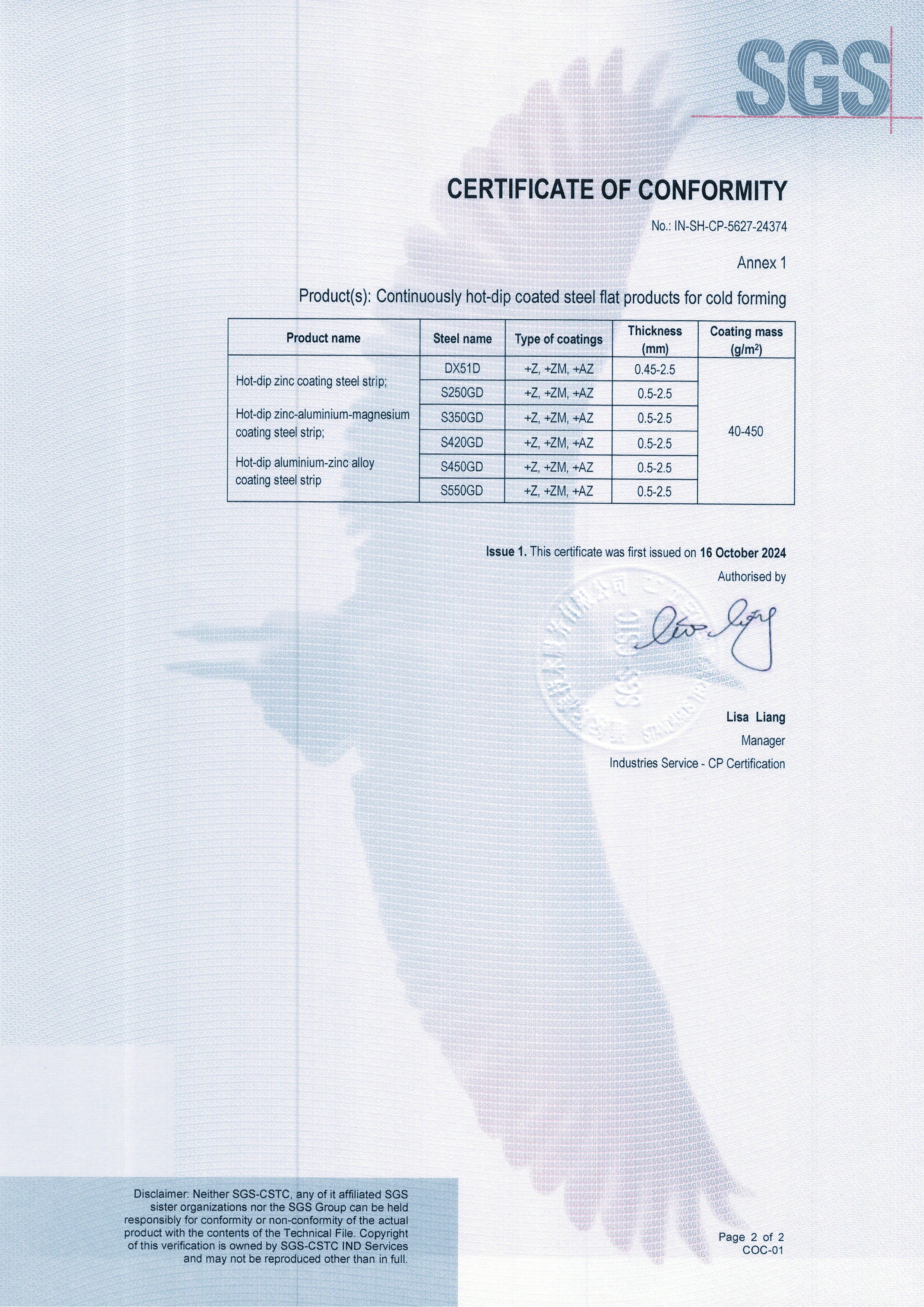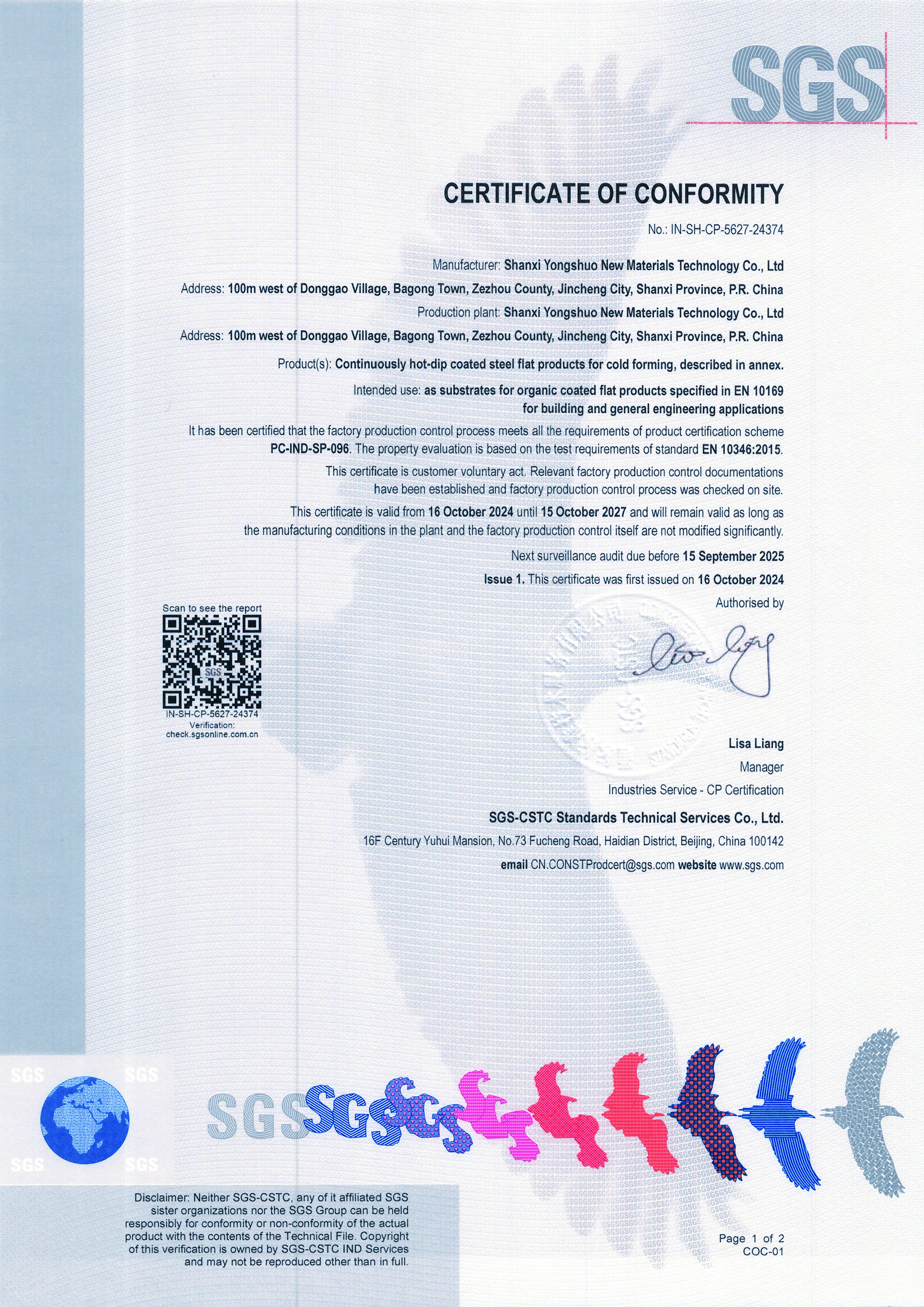 永碩EN 10346歐標(biāo)熱鍍標(biāo)準(zhǔn)SGS認(rèn)證(第二頁(yè))