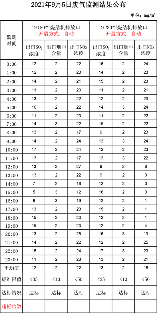 9月5日晉鋼集團廢氣監(jiān)測結(jié)果公布