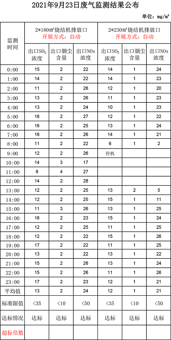 9月23日晉鋼集團(tuán)廢氣監(jiān)測(cè)結(jié)果公布