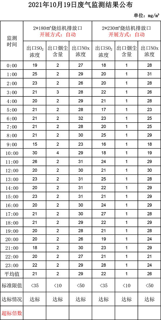 10月19日晉鋼集團(tuán)廢氣監(jiān)測(cè)結(jié)果公布