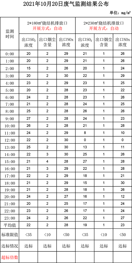 10月20日晉鋼集團(tuán)廢氣監(jiān)測(cè)結(jié)果公布