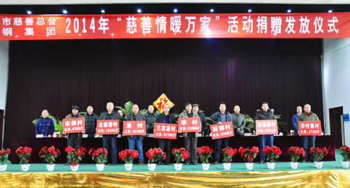 2014年1月11日上午,由晉城市慈善總會(huì)和晉鋼集團(tuán)共同舉辦的2014年“慈善情暖萬(wàn)家”捐贈(zèng)發(fā)放儀式在晉鋼會(huì)堂隆重舉行。雖然正值三九寒冬,但晉鋼會(huì)堂內(nèi)充溢著愛(ài)意暖流。