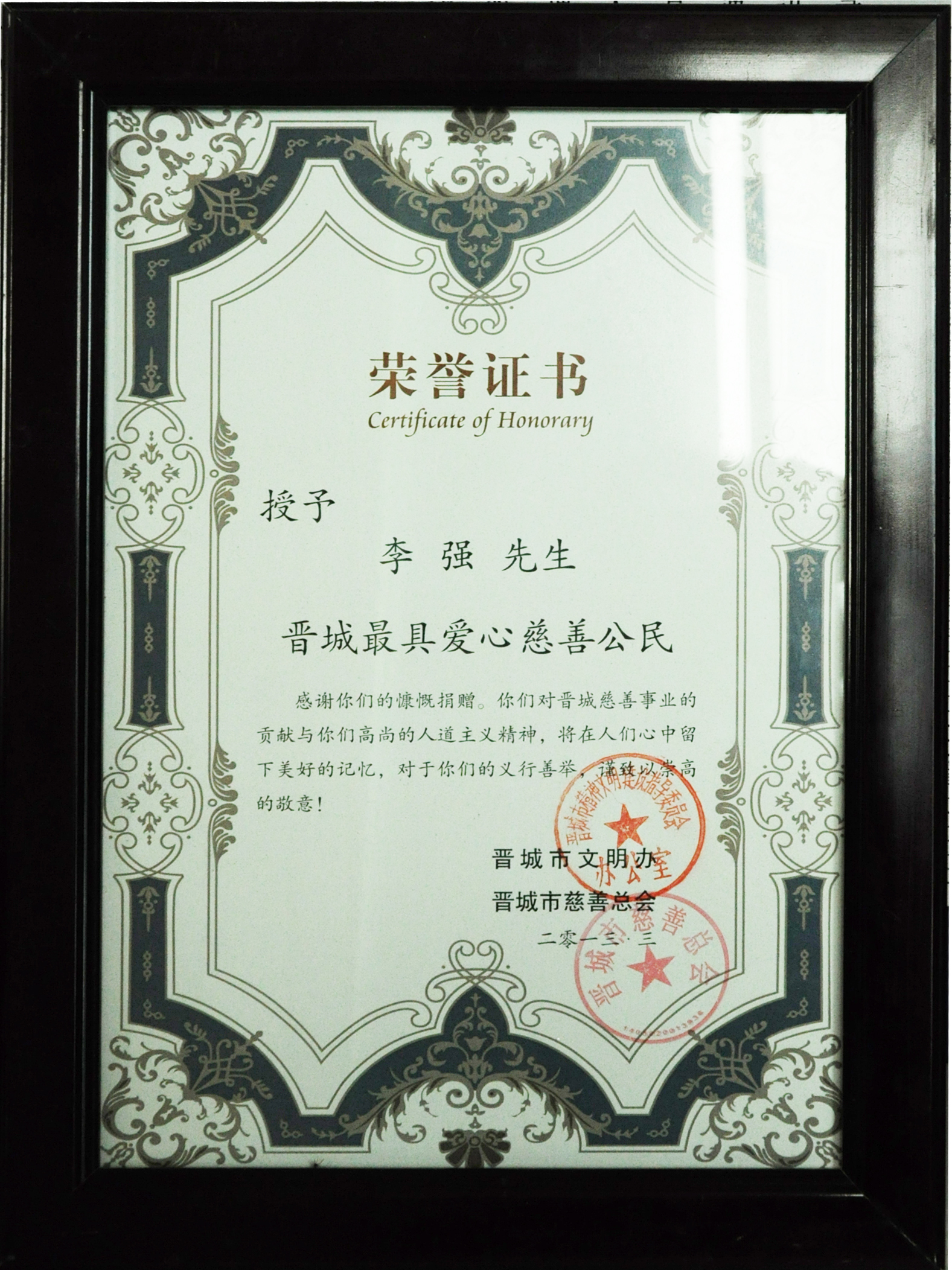 啟動現(xiàn)場,晉城市文明辦、晉城市慈善總會對全市29家單位和個人進行了表彰,授予我集團為“晉城最具愛心慈善企業(yè)”,授予集團總裁李強為“晉城最具愛心慈善公民”。(郭迎軍)
